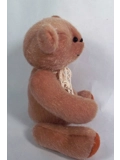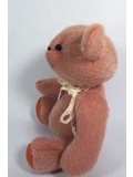 Fudge is made from brown mini bear fabric, he has glass bead eyes and wears a cream lace ribbon.