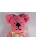 Handmade from pink faux fur miniature fabric. Shes cotter pin jointed on her neck and arms.