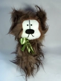 Marley is hand sewn from red and brown tone faux fur and has small black eyes.