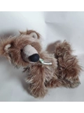Milo has a long snout with a hand sewn black felted material nose and two cute black eyes. He is always getting into mischief .
